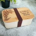 Personnalisez votre Lunch Box avec le texte ou le prénom de votre choix. Une boite à repas est idéale pour déjeuner confortablement, même à l'extérieur. De plus, la personnalisation, gravée directement sur le couvercle en bois, en fait un objet unique de qualité, idéal à offrir pour diverses occasions. Offrez ainsi un cadeau qui allie style et praticité !