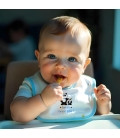 MATIÈRE : Fabriqué en 100% polyester, ce bavoir est doux pour la peau délicate des bébés tout en offrant une grande résistance pour un usage quotidien.