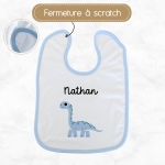À la recherche d'un cadeau unique pour un petit dinosaure en herbe ? Optez pour ce bavoir spécial, personnalisable avec le prénom de l'enfant ou un texte de votre choix ! Parfait pour un cadeau original, ce bavoir à motif dinosaure est à la fois pratique et mémorable, idéal pour accompagner bébé lors de ses premiers repas tout en gardant un précieux souvenir de ses premières aventures jurassiques.