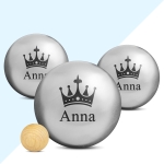 Découvrez nos boules de pétanque personnalisées, modèle Reine avec une couronne, pour une touche unique. Idée cadeau idéale pour les amateurs de pétanque, ces boules allient performance et personnalisation. Offrez un jeu de boules inoubliable avec des boules de pétanque gravées, parfaites pour toutes les occasions !
