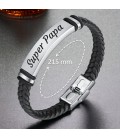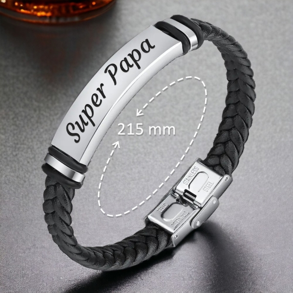 Ce bracelet pour homme est à personnaliser avec le prénom de votre choix. Le bracelet est en cuir tressé et la plaque personnalisable est en acier inoxydable pour une tenue dans le temps garantie. C'est une belle idée de cadeau à offrir pour la fête des pères, la Saint-Valentin, un anniversaire, Noël...