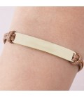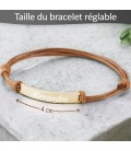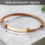 TAILLE : La taille de ce bracelet est réglable. Il peut donc s’adapter à tout type de poignet. Au plus petit, le diamètre en d’environ 5 cm. Au plus grand, le diamètre est d’environ 8 cm. La plaque personnalisable fait 4 cm de longueur et 0,7 cm de largeur.