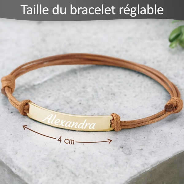 MATIÈRE : La plaque personnalisable du bracelet est en acier inoxydable. L'avantage de l'acier inoxydable réside dans sa durabilité, sa résistance à la corrosion et sa facilité d'entretien. Le bracelet est quant à lui composé de corde de couleur marron.