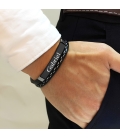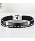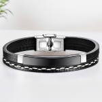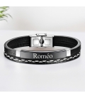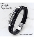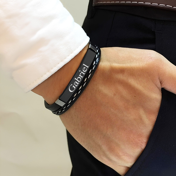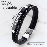 Distinguez-vous avec élégance grâce à notre bracelet personnalisé pour homme. Fait de simili cuir et d'acier inoxydable de haute qualité, ce bracelet arbore une plaque noire que vous pouvez graver selon vos envies : un prénom, une date, des initiales, un surnom ou un petit message. Un accessoire intemporel qui allie style et sentiment, parfait pour un cadeau !