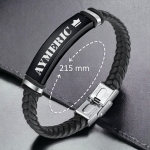 Ce bracelet pour homme modèle Fête des Pères est à personnaliser avec le prénom de votre choix. Le bracelet est en cuir tressé et la plaque personnalisable est en acier inoxydable noire pour une tenue garantie dans le temps. C'est une belle idée de cadeau à offrir pour la fête des pères, la Saint-Valentin, un anniversaire, Noël...