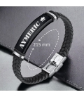MATIÈRE : Ce bracelet est en acier inoxydable. L'avantage de l'acier inoxydable réside dans sa durabilité, sa résistance à la corrosion, sa facilité d'entretien et son aspect esthétique moderne. Il est composé d’une plaque personnalisable et d’un bracelet noir en simili cuir pour une résistance à toute épreuve.