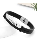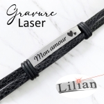 MATIÈRE : Ce bracelet est en acier inoxydable. L'avantage de l'acier inoxydable réside dans sa durabilité, sa résistance à la corrosion, sa facilité d'entretien et son aspect esthétique moderne. Il est composé d’une plaque personnalisable et d’un bracelet noir en simili cuir pour une résistance à toute épreuve.