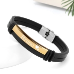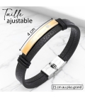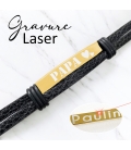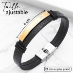 MATIÈRE : Ce bracelet est en acier inoxydable. L'avantage de l'acier inoxydable réside dans sa durabilité, sa résistance à la corrosion, sa facilité d'entretien et son aspect esthétique moderne. Il est composé d’une plaque personnalisable et d’un bracelet noir en simili cuir pour une résistance à toute épreuve.