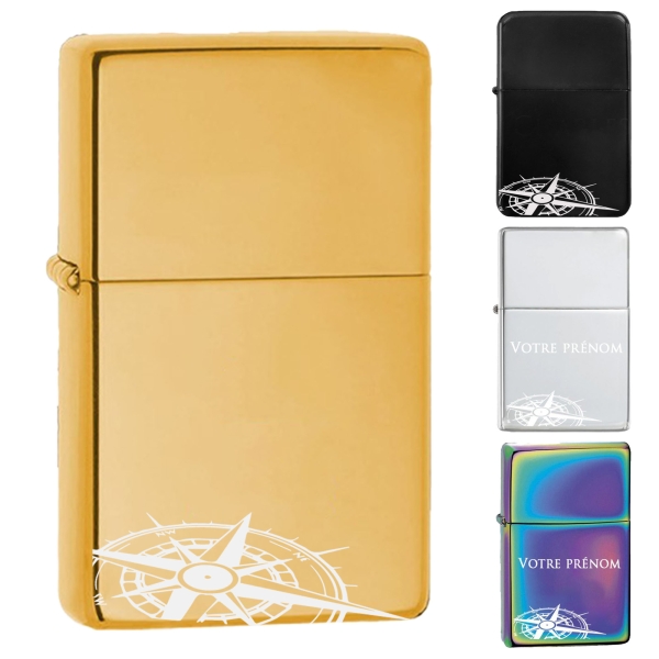 Briquet personnalisé essence couleur bleu - Modèle boussole