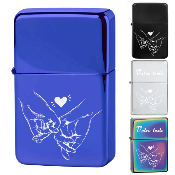 Briquet personnalisé essence couleur bleu - Modèle coeur