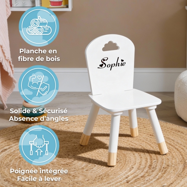 Offrez à votre enfant une chaise solide et sécurisée, fabriquée en panneau de fibre de bois. Son design ergonomique avec un dossier en forme de nuage apporte confort et style. Disponible en 4 coloris (rose, gris, étoilé, blanc). Facile à assembler, elle est idéale pour les enfants de 2 à 6 ans. Parfaite pour jouer et apprendre en toute sécurité.