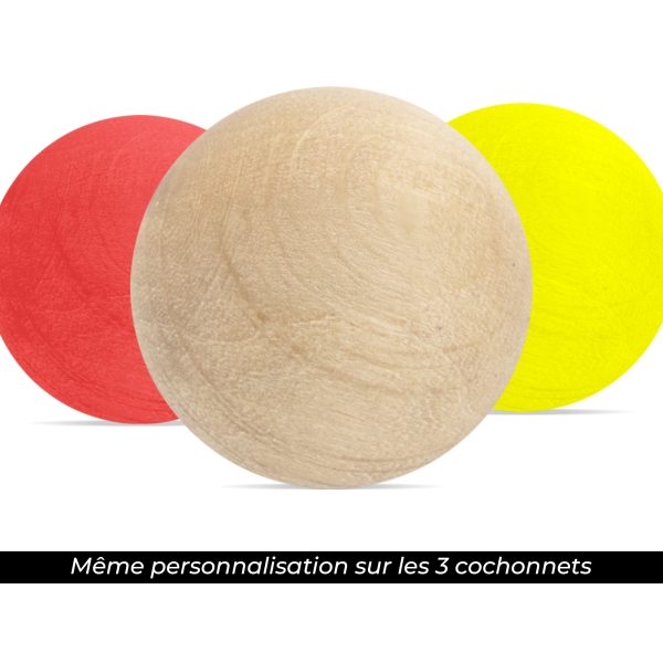 PERSONNALISATION : Les cochonnets sont personnalisables avec le texte ou le prénom de votre choix.