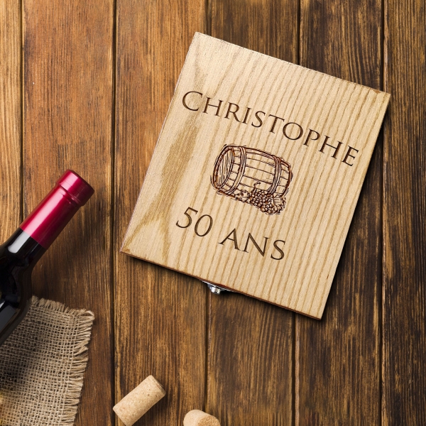 Vous recherchez un cadeau qui allie élégance et personnalisation ? Ce coffret sommelier avec 4 accessoires est le cadeau idéal ! Personnalisez-le avec le prénom et l'âge de votre choix. La gravure dans le bois en fait un cadeau unique et authentique.