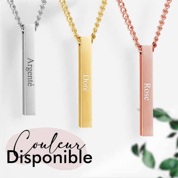 Imaginez-vous portant un tel collier, avec une fine barre métallique brillant de couleur rose autour de votre cou, gravée avec un prénom qui résonne profondément dans votre cœur. Ce collier est parfait comme cadeau pour la fête des mères ou encore la Saint-Valentin, de plus, le collier est fourni directement avec une boîte cadeau.