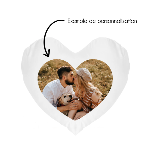 PERSONNALISATION : Ce coussin forme cœur est à personnaliser avec l'image de votre choix.