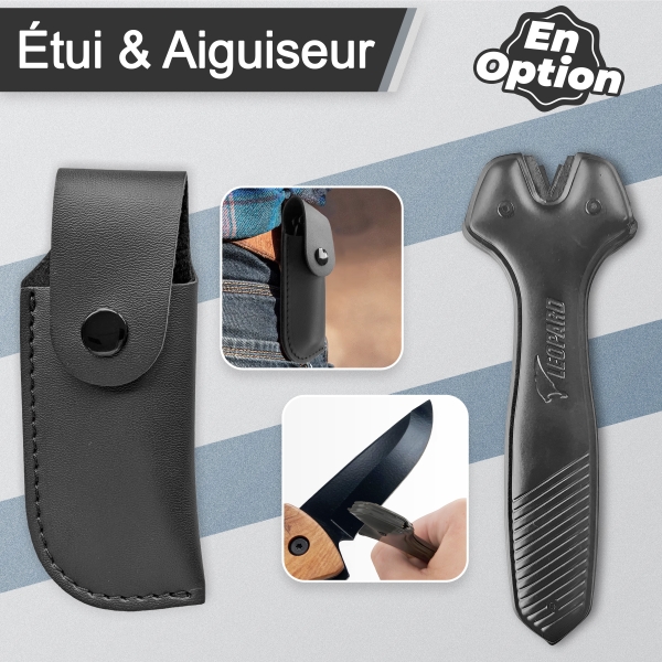 OPTIONS DISPONIBLES : Il peut être livré en option avec un étui en cuir (5€), un aiguiseur (10€) ou les deux (15€).