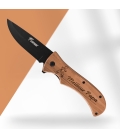 Magnifique couteau à personnaliser parmi nos modèles de la marque Léopard. Couteau au design sobre et classe grâce à sa lame noire et son manche personnalisable en bois ! Un cadeau parfait pour tous les types d'événements, anniversaire, fête des pères, Noël. À offrir aux amoureux de la nature, chasse ou pêche.