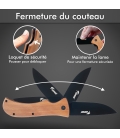 DIMENSION : Le couteau dispose d'une lame de 8,5 cm et d'un manche de 12 cm.