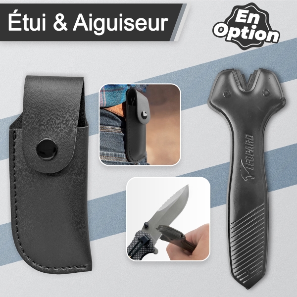 OPTIONS DISPONIBLES : Il peut être livré en option avec un étui en cuir (5€), un aiguiseur (10€) ou les deux (15€).