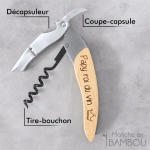 PERSONNALISATION : Le manche en bambou du tire-bouchon est personnalisable avec le texte de votre choix. Avec votre prénom d’inscrit sur celui-ci, vous obtiendrez un cadeau unique et original pour la fête des pères. Nous réalisons votre cadeau personnalisé dans notre atelier en France en 24h !