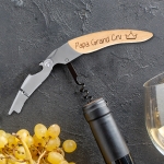 Personnalisez le manche en bois de ce tire-bouchon sommelier modèle Fête des Pères avec le texte de votre choix. Il présente 3 fonctions : tire-bouchon, décapsuleur et coupe-capsule. C'est un cadeau unique pour tout amateur de vin et le cadeau parfait pour les connaisseurs et pour la fête des pères.