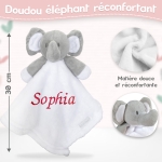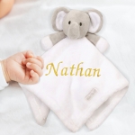 Ce doudou éléphant de couleur blanc est à personnaliser avec la broderie du prénom que vous souhaitez. Il deviendra rapidement le compagnon indispensable de bébé lors de sa sieste et pour l'heure du coucher. C'est l'assurance d'un cadeau vraiment original et réussi pour une occasion tel qu'une naissance.