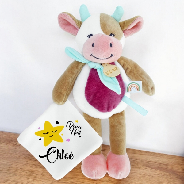 Découvrez notre doudou vache personnalisé, conçu pour apporter réconfort et tendresse à votre enfant. Unique grâce à la personnalisation, ce doudou deviendra son compagnon de jeu et de sommeil favori. Avec son regard doux, cette vache deviendra vite la meilleure amie des tout-petits