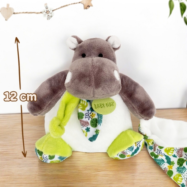 Découvrez notre doudou hippopotame personnalisé, conçu pour apporter réconfort et tendresse à votre enfant. Unique grâce à la personnalisation, ce doudou deviendra son compagnon de jeu et de sommeil favori. Moelleux et rassurant, cet hippopotame veille sur les rêves de votre enfant.