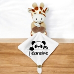 Découvrez notre doudou girafe personnalisé, conçu pour apporter réconfort et tendresse à votre enfant. Unique grâce à la personnalisation, ce doudou deviendra son compagnon de jeu et de sommeil favori. Avec son long cou et sa douceur infinie, la girafe est idéale pour les petits aventuriers.