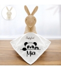 Découvrez ce doudou lapin de couleur blanc ou marron à personnaliser avec le prénom que vous souhaitez. Il deviendra rapidement le compagnon indispensable de bébé lors de sa sieste et pour l'heure du coucher. C'est l'assurance d'un cadeau vraiment original et réussi pour une occasion telle qu'une naissance.