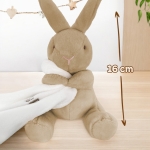 DIMENSION : Le doudou lapin fait 16 cm de hauteur. Le mouchoir carré fait environ 18 cm pour chaque côté.