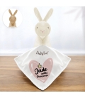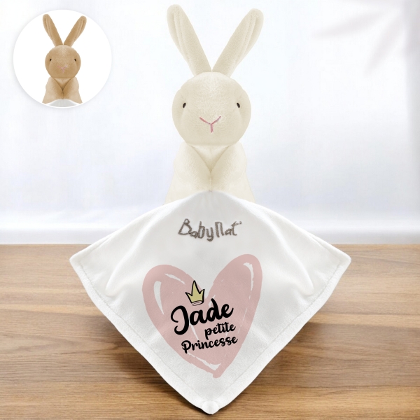 Découvrez ce doudou lapin de couleur blanc ou marron à personnaliser avec le prénom que vous souhaitez. Il deviendra rapidement le compagnon indispensable de bébé lors de sa sieste et pour l'heure du coucher. C'est l'assurance d'un cadeau vraiment original et réussi pour une occasion telle qu'une naissance.