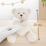 DIMENSION : Le doudou ourson fait 11 cm de hauteur. Le mouchoir carré fait environ 18 cm pour chaque côté.