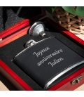 Flasque en cuir noir personnalisée - Texte