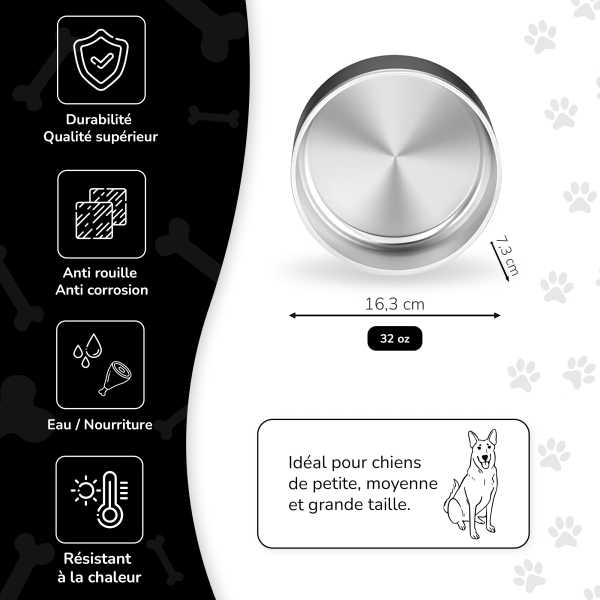 DIMENSION : La gamelle fait 16,3 cm de diamètre et possède une hauteur de 7,3 cm.