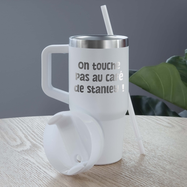 Tasse thermos avec poignée personnalisable - Modèle Texte