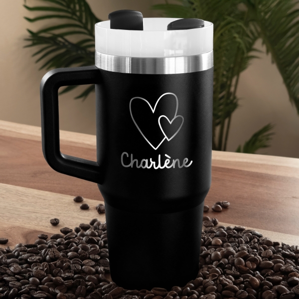 Mug thermos personnalisé avec poignée – Modèle Cœur