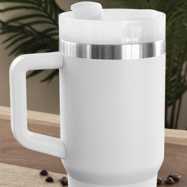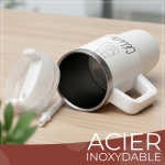 MATIÈRE : Le mug est fabriqué en acier inoxydable 304 recyclé, reconnu pour sa solidité, sa durabilité et son aspect écoresponsable.
