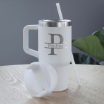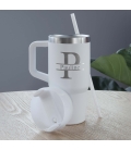 Ce mug isotherme personnalisé avec une grande initiale et le prénom de votre choix est le cadeau idéal, à la fois sobre et élégant. Réalisée par gravure laser professionnelle sur l’acier inoxydable, votre personnalisation ne s’efface pas dans le temps. D’une capacité de 400 ml, le mug mesure 17,8 cm de hauteur et 7,7 cm de diamètre, parfait pour garder vos boissons à la température idéale.