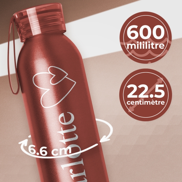 Découvrez notre superbe gourde en aluminium recyclé de 600 ml, à la fois élégante, solide et respectueuse de l’environnement. Personnalisable selon vos envies, elle peut être gravée avec un texte, un prénom, une date ou même un logo, pour en faire un objet unique et significatif. Idéale comme cadeau d’entreprise, souvenir d’événement, présent d’anniversaire ou attention personnalisée.