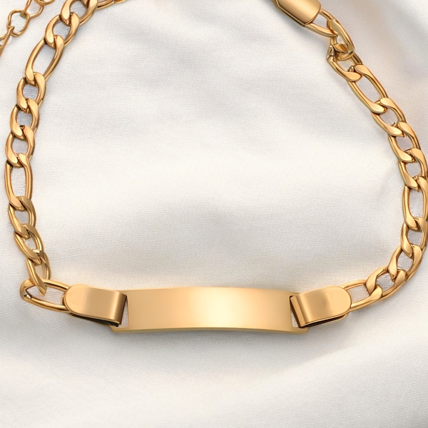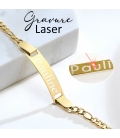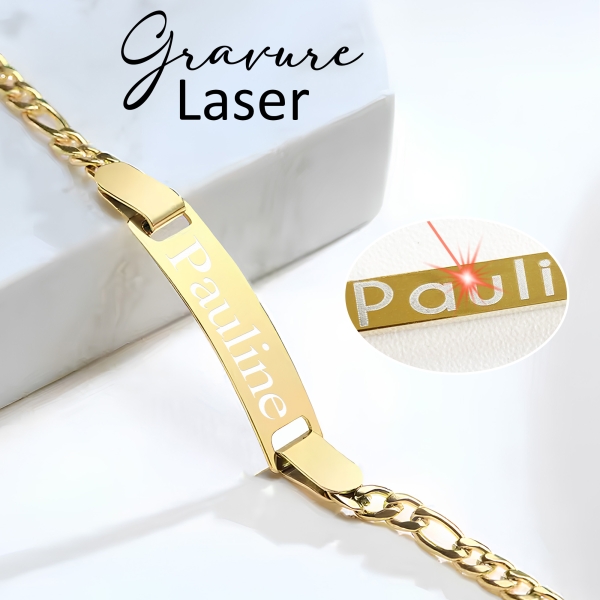 MATIÈRE : Ce bracelet est en acier inoxydable. L'avantage de l'acier inoxydable réside dans sa durabilité, sa résistance à la corrosion, sa facilité d'entretien et son aspect esthétique moderne. Il est composé d’une plaque personnalisable et d’un bracelet en argent ou en or.