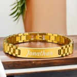 PERSONNALISATION : La plaque dorée en acier inoxydable de cette gourmette de couleur or est personnalisable avec le texte ou le prénom de votre choix. Avec votre prénom d’inscrit sur celui-ci, vous obtiendrez un cadeau unique et original pour la fête des pères. Nous réalisons votre cadeau personnalisé dans notre atelier en France en 24h !