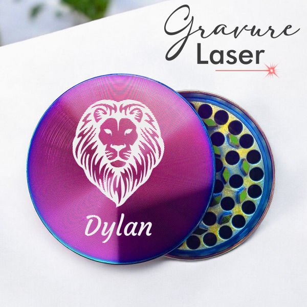 Découvrez notre grinder icy modèle Lion. Celui-ci est personnalisable avec le prénom ou le surnom de votre choix. C'est un cadeau original et unique que vous pouvez offrir à diverses occasions telles qu'un anniversaire, Noël...