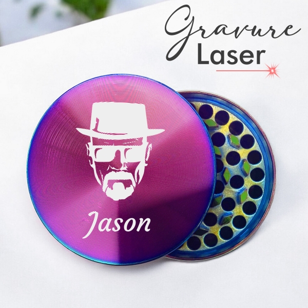 Découvrez notre grinder icy modèle Mr White. Celui-ci est personnalisable avec le prénom ou le surnom de votre choix. C'est un cadeau original et unique que vous pouvez offrir à diverses occasions telles qu'un anniversaire, Noël...