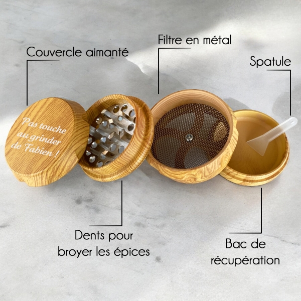 Découvrez notre grinder personnalisable avec le texte de votre choix. C'est un cadeau original et unique que vous pouvez offrir à diverses occasions telles qu'un anniversaire, Noël...