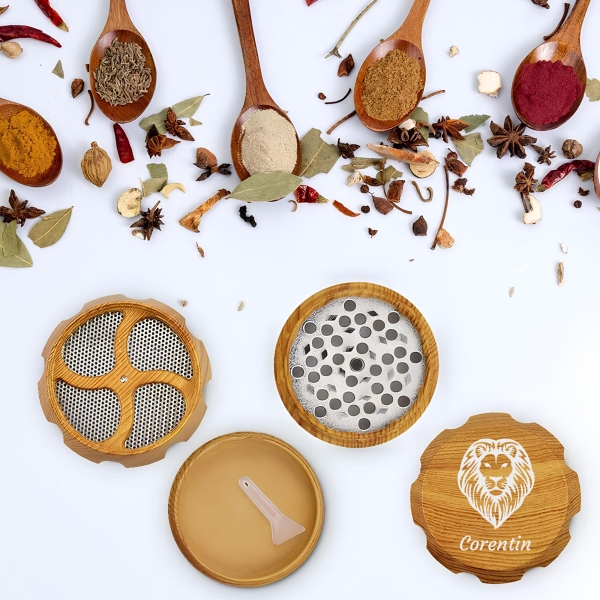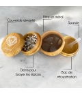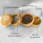 MATIÈRE : Le Grinder est en bois et en acier inoxydable, la spatule est en plastique.