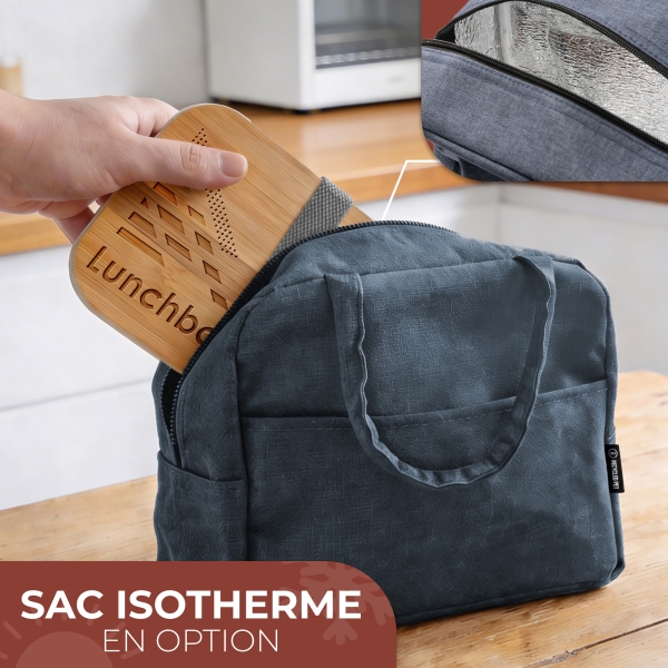 MATÉRIAUX : Couvercle en bambou (Certification Food Grade, sans BPA).