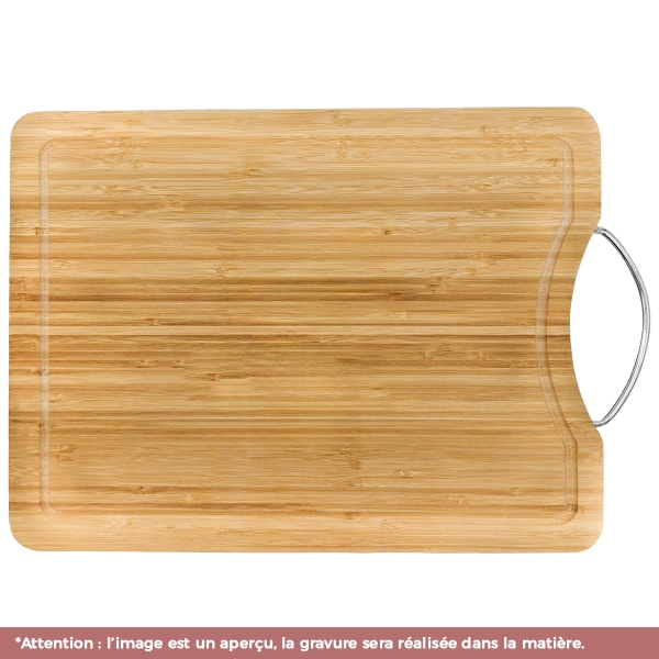 GRAVURE : Réalisée à l'aide d'un laser, vous obtiendrez une gravure de qualité qui ne bougera pas dans le temps. Le bambou étant un matériau naturel, la teinte et les veinures de la gravure peuvent être différentes des photos présentées.