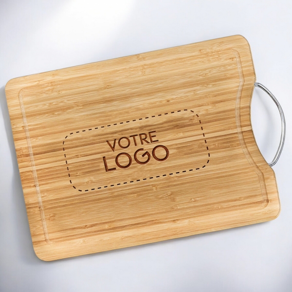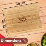 Grande planche à découper en bambou personnalisée avec votre logo. Elle valorise votre image et s’adapte à toutes les occasions : cadeau de fin d’année, objet de fidélisation ou accessoire pour votre établissement.