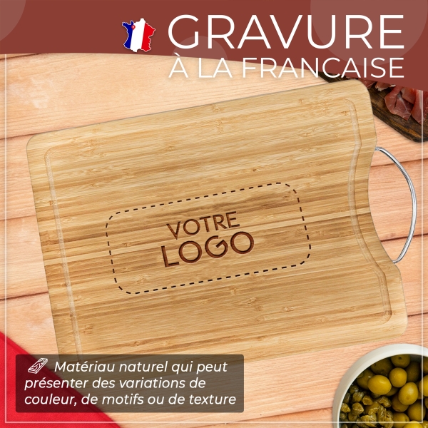 PERSONNALISATION : La planche à découper est personnalisable avec le logo de votre choix. Avec votre logo d'inscrit sur celle-ci, vous obtiendrez un cadeau unique et original. Nous réalisons votre cadeau personnalisé dans notre atelier en France !